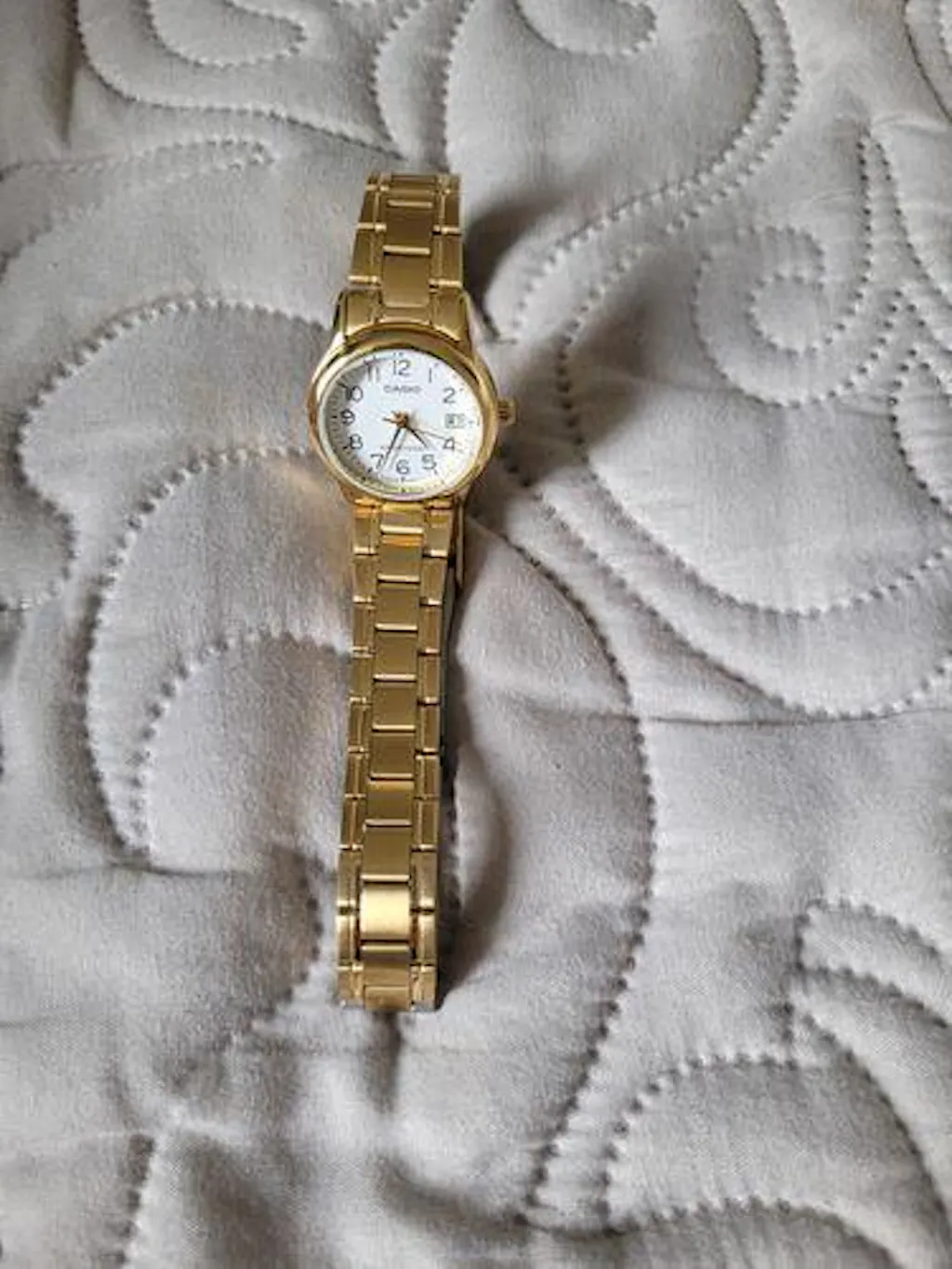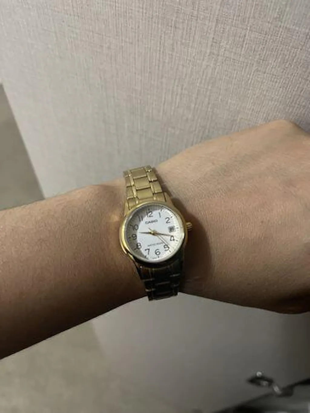 El Casio LTP-V002G-7B2UD combina una esfera blanca con números arábigos dorados y manecillas doradas, lo que proporciona una apariencia clásica y refinada. La caja dorada de acero inoxidable y la correa de acero inoxidable dorado realzan su elegancia, haciéndolo adecuado tanto para el uso diario como para ocasiones especiales. Este reloj es una opción estilizada que ofrece una mezcla de funcionalidad y estética atemporal