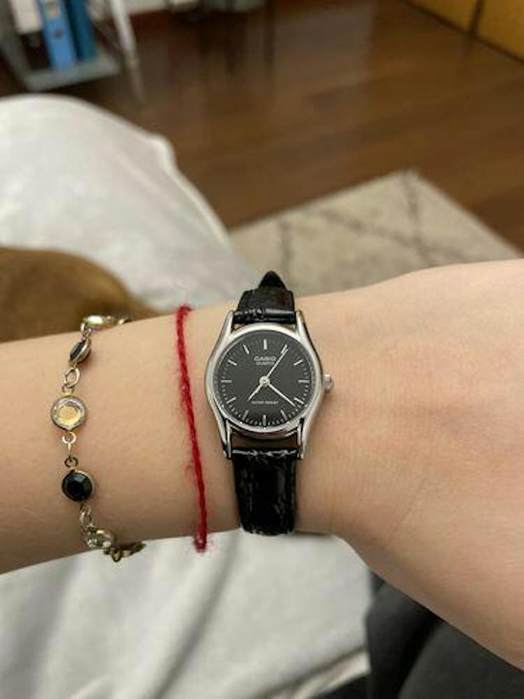 Reloj Casio Negro Con Correa De Cuero Para Mujer