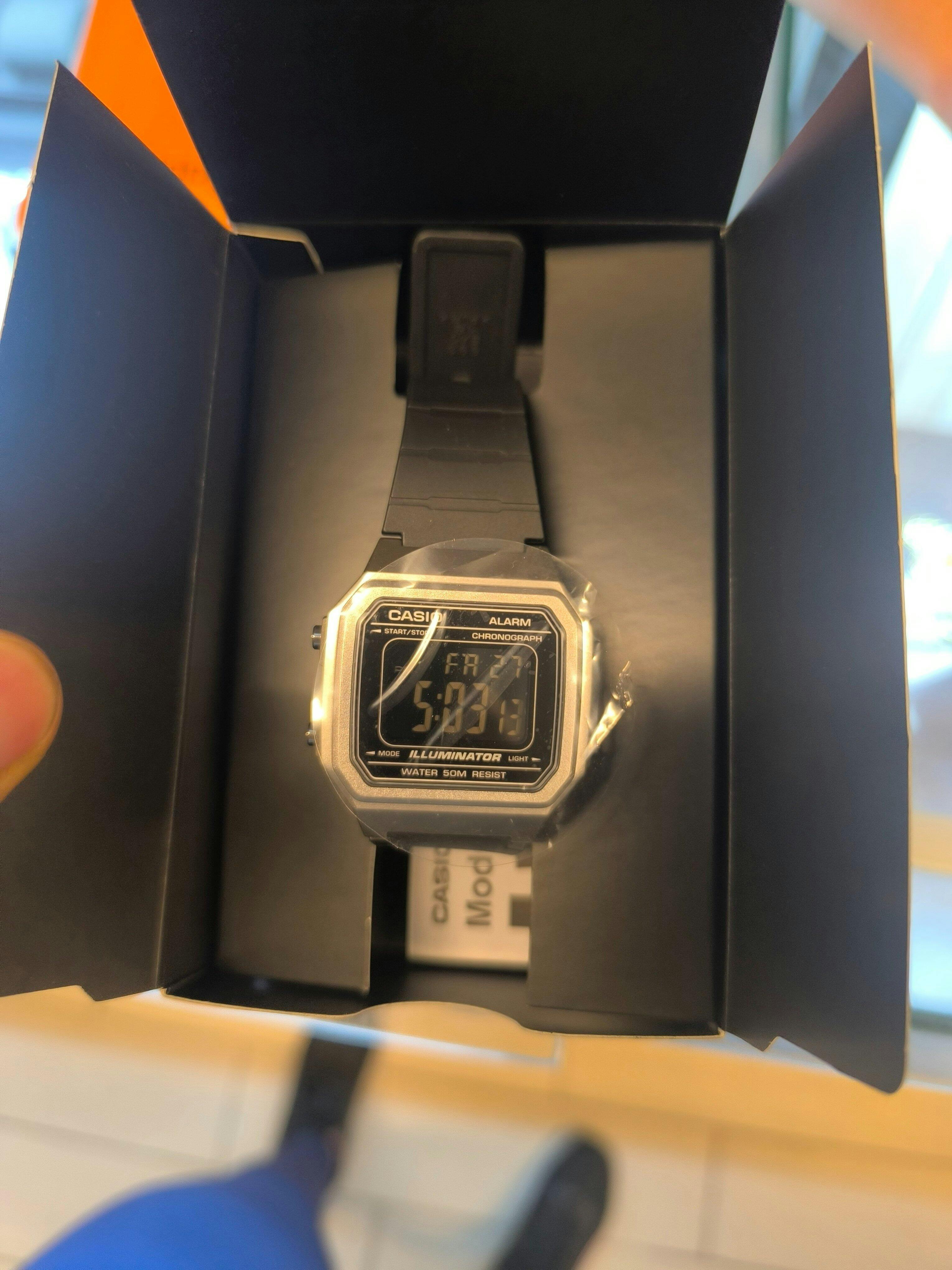 Ofrece funciones esenciales como cronómetro, alarma diaria, calendario automático y luz LED. Resistente al agua hasta 50 metros, es ideal para el uso diario con un estilo retro, minimalista y confiable.