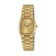 El Casio LTP-1169N-9ARDF presenta una caja de resina dorado con acabado metálico y un brazalete en acero inoxidable dorado, logrando un diseño elegante y femenino. Su carátula dorada con índices y agujas en contraste aporta un estilo sobrio y refinado, manteniendo una estética clásica y atemporal.