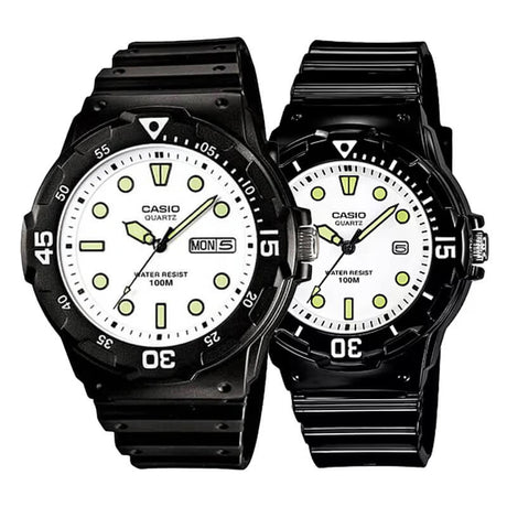 Pack Relojes Casio MRW y LRW – Estilo Deportivo en Blanco para Él y Ella