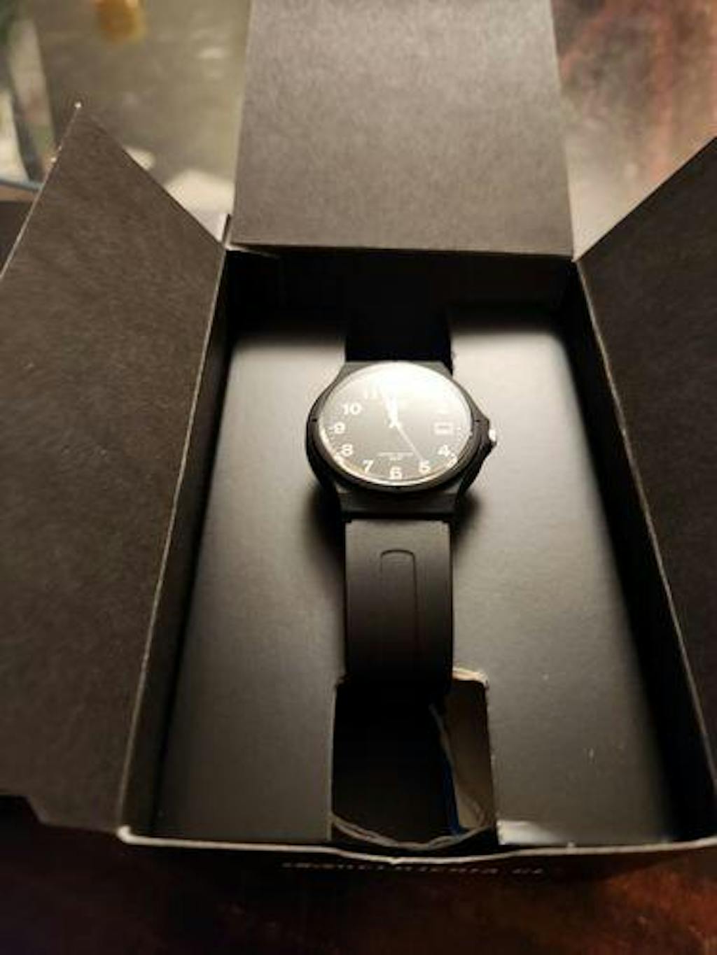 Diseño simple y ultraliviano con caja compacta en tono negro que prioriza la comodidad y el uso práctico diario. La esfera negra con numeración clara ofrece una lectura directa y ordenada, manteniendo una estética funcional y discreta, muy valorada por su facilidad de uso y perfil bajo.
