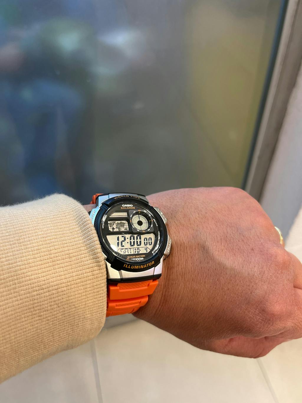 Casio AE-1000W-4BVDF presenta un diseño deportivo con una caja de resina duradera y una correa resistente, adecuada para el uso...