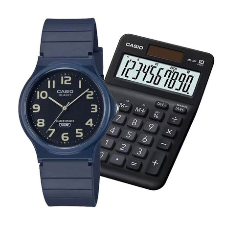 Pack Casio Unisex Vuelta a Clases - Calculadora + Reloj - Azul Oscuro