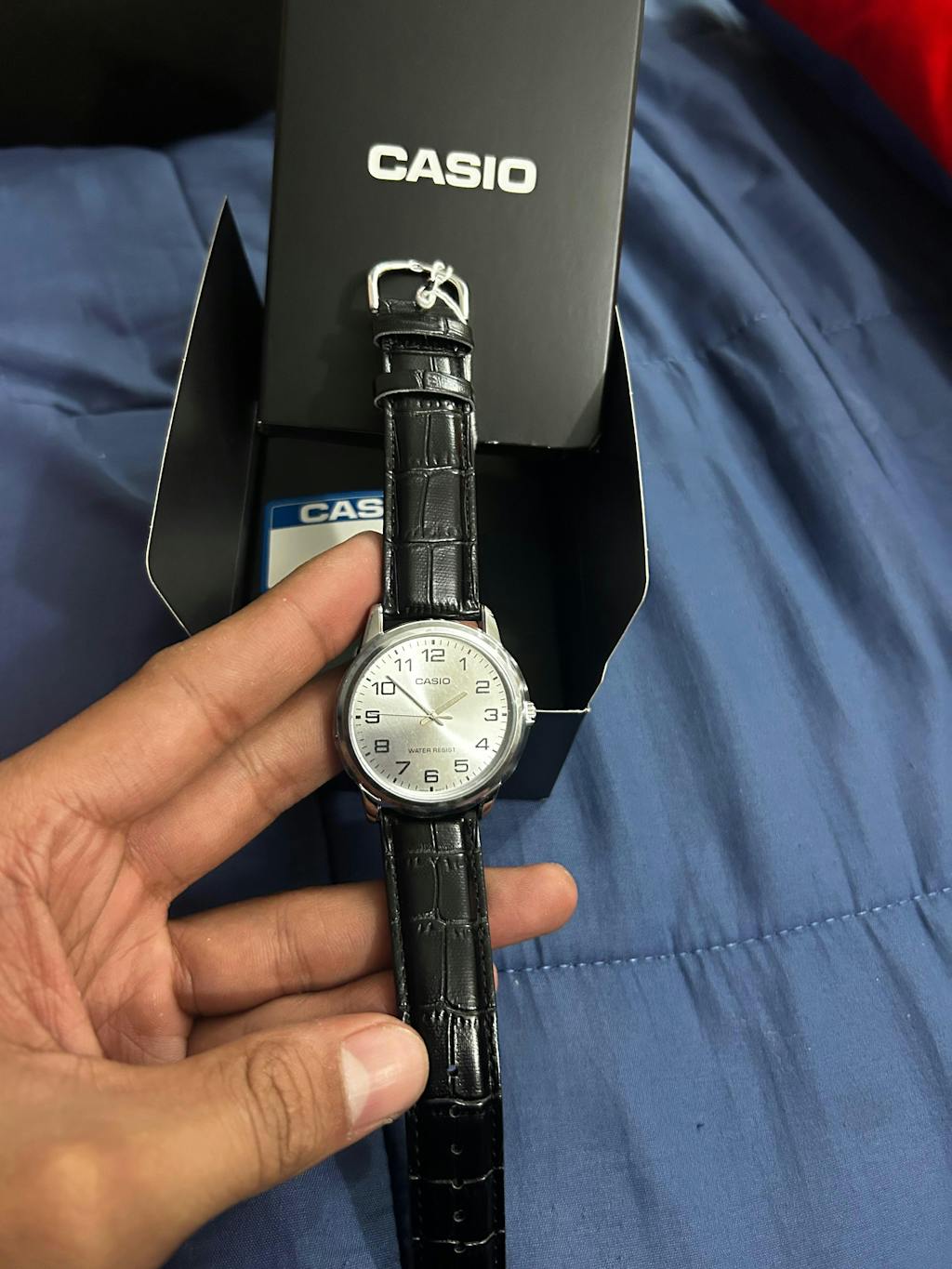 El Casio MTP-V001L-7BUDF es un reloj analógico que destaca por su diseño clásico y sofisticado. Su caja de acero inoxidable en color plateado complementa la correa de cuero negro, la esfera blanca del reloj presenta marcadores de hora en números romanos, lo que añade un toque de elegancia y facilita la lectura. Este reloj está diseñado con una construcción robusta y una estética refinada que lo hace adecuado para aquellos que buscan un reloj duradero y con estilo.