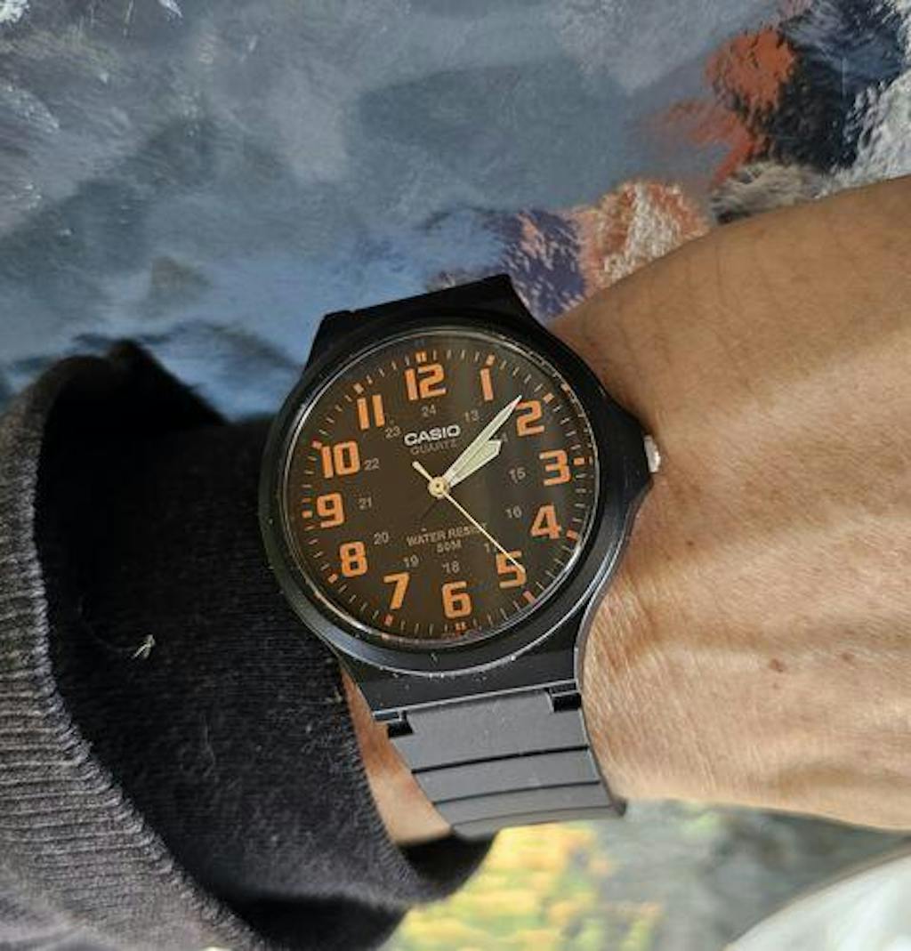 Casio MW-240-4BVDF se destaca por su diseño clásico con un toque de modernidad gracias a su bisel de color contrastante. La construcción en resina proporciona ligereza y resistencia, haciéndolo cómodo para el uso diario.