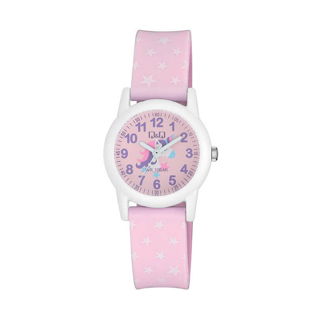 Modelo VR99-013 Marca Q&Q Tipo Reloj Análogo Género Niña Color Rosado Material Caja Resina Material Pulsera Silicona Diámetro de Caja ...