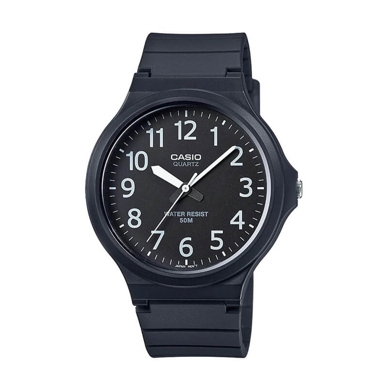 Casio MW-240-1BVDF se destaca por su simplicidad y facilidad de uso. Con una construcción en resina que asegura ligereza y resistencia, este reloj es cómodo de llevar durante todo el día. Es ideal para quienes buscan un reloj analógico confiable y accesible que cumpla con la función básica de mostrar la hora de manera clara y precisa.