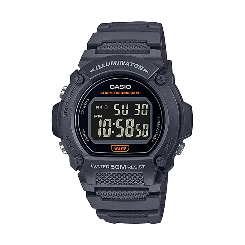 El Casio W-219H-8BV ofrece un estilo digital clásico con una estética sobria y versátil. Su caja de resina gris mate y pantalla de fácil lectura crean un look moderno y funcional. Incluye cronómetro, alarma diaria, calendario automático y luz LED para visibilidad en la oscuridad. Su correa de resina flexible brinda comodidad durante todo el día. Con resistencia al agua hasta 50 metros, es una opción práctica para el uso diario sin complicaciones.