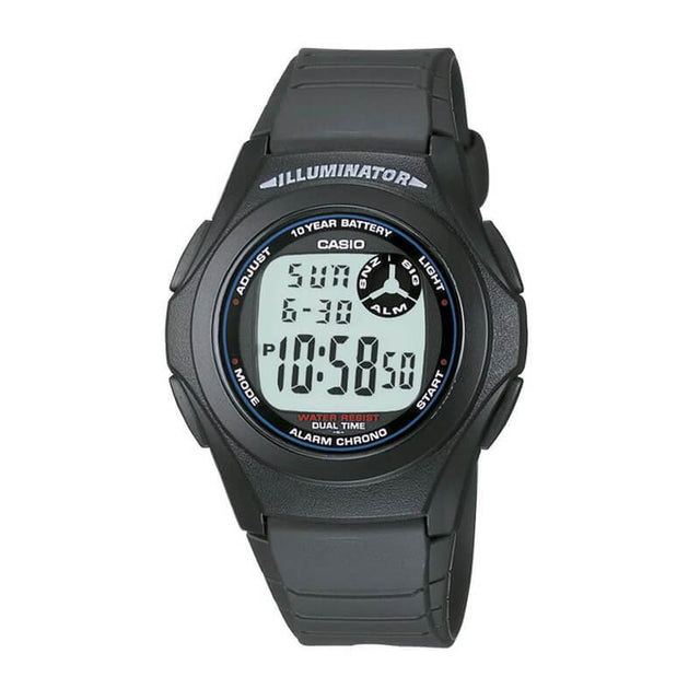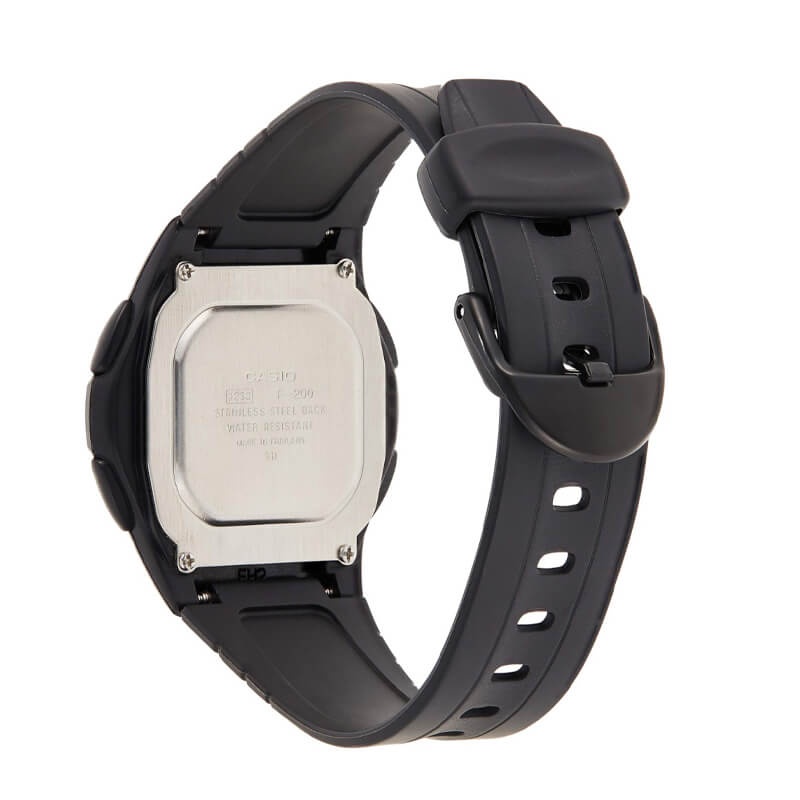 El Casio F-200W-1A es un reloj digital práctico y liviano, con diseño clásico y pantalla amplia para fácil lectura. Su caja de resina negra y correa flexible aseguran comodidad todo el día. Incluye hora dual, cronómetro, alarma diaria, calendario automático y luz LED para visibilidad nocturna. Resistente al agua, es ideal para quienes buscan un reloj confiable, funcional y sin complicaciones para el uso diario.