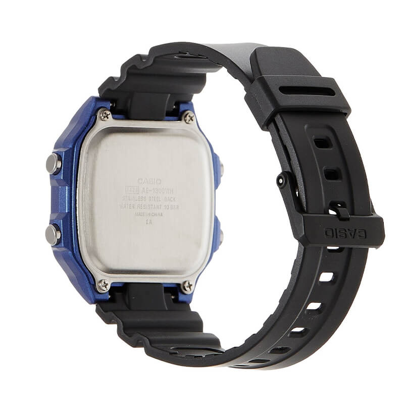 El Casio AE-1300WH-2AV ofrece estilo deportivo y funcionalidad en un diseño compacto. Su caja de resina azul con carátula tipo cronómetro de estadio destaca por su estética dinámica y juvenil.