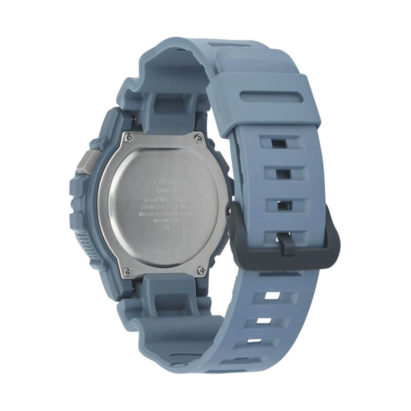 El Casio WS-1400H-2AVDF ofrece un estilo deportivo con caja y correa de resina azul, combinadas con un bisel negro que resalta su carácter robusto. Su amplia pantalla digital garantiza una lectura clara y rápida en todo momento.