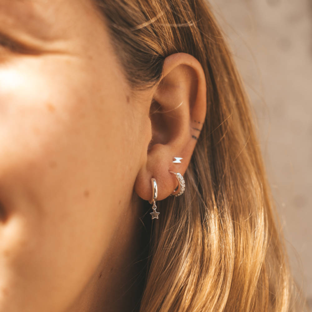 Aros simples y delicados con estrella y rayo. Ideales para hacer tu oreja. Una combinación perfecta que mezcla estilos y realza tu look.