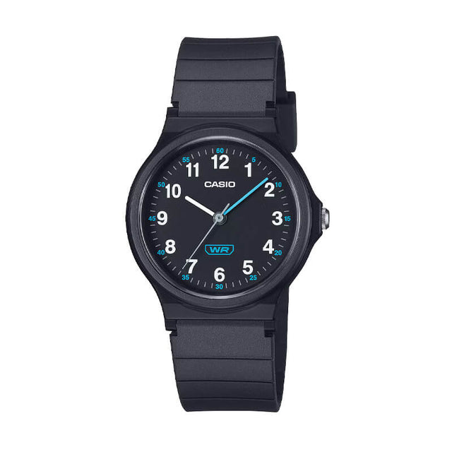 El Casio LQ-24B-1B es un reloj análogo femenino de diseño simple y liviano. Su carátula negra con números blancos de alto contraste permite una lectura rápida y clara, ideal para el día a día. La caja de resina y la correa delgada en tono negro le dan un look minimalista y discreto.