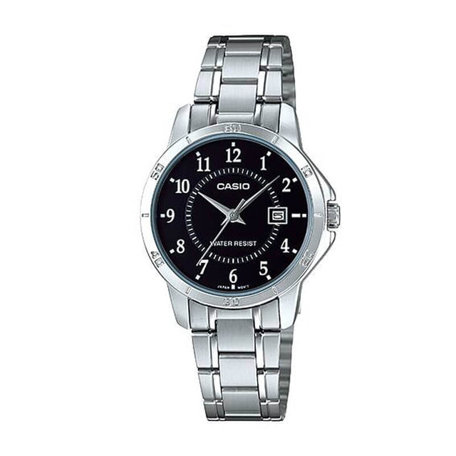 Reloj Casio Metálico Esfera Negra con Números Grandes