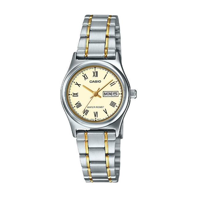 Reloj Casio Mujer Bicolor Esfera Dorada
