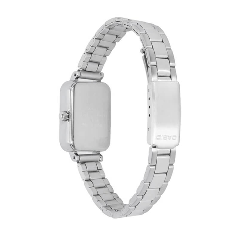 El Casio LTP-V009D-4E combina una caja de resina cromada plateada con brazalete metálico de acero inoxidable, ofreciendo un diseño compacto y femenino. Su esfera rosada con índices plateados y manecillas estilizadas aporta un aire delicado y elegante, pensado para un look clásico y versátil.