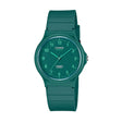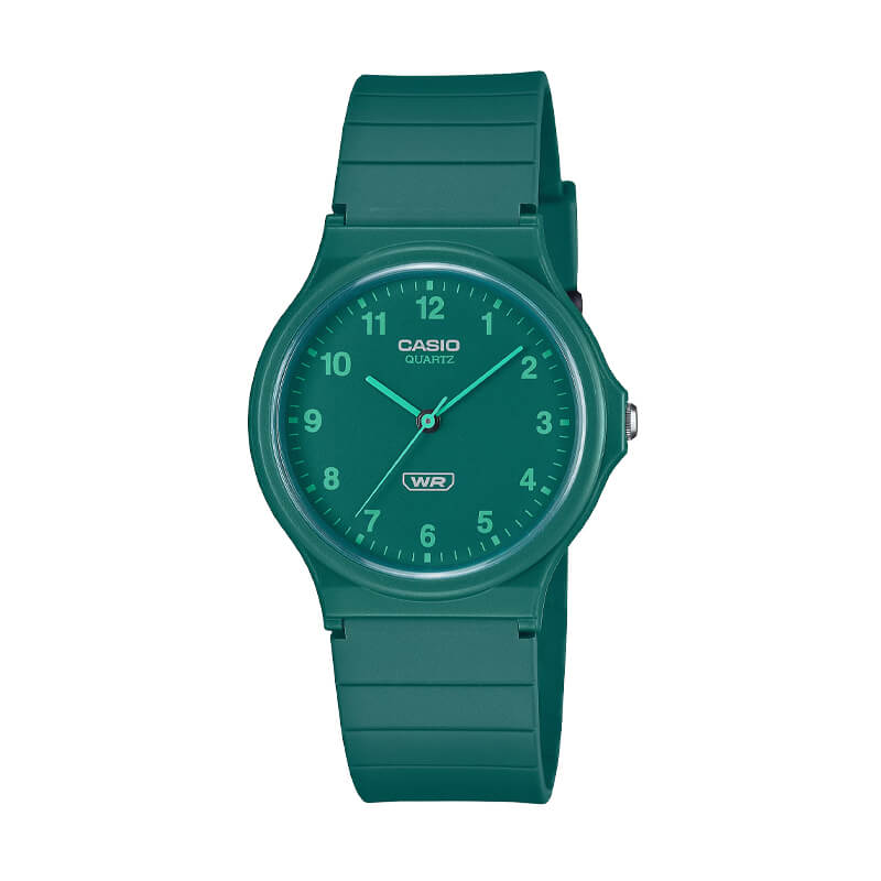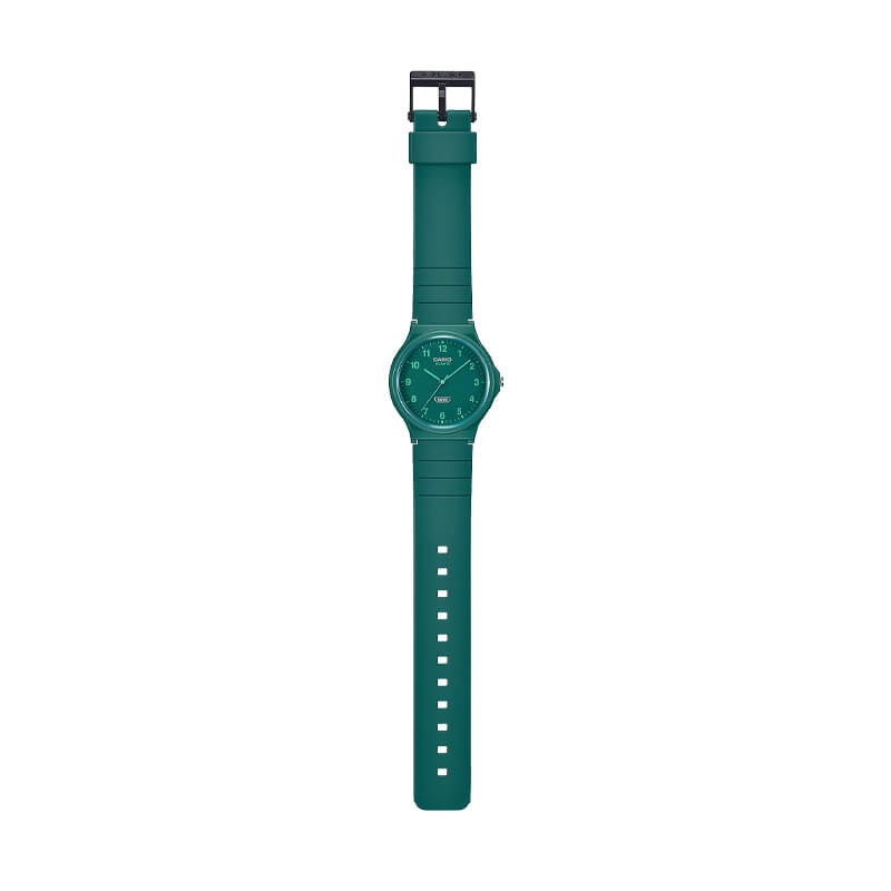 El Casio MQ-24B-3B es un reloj análogo unisex que apuesta por el diseño monocromático y minimalista. Su look completamente verde desde la caja y la correa hasta la esfera y los números crea una estética moderna y original, ideal para quienes buscan un accesorio funcional pero con estilo diferenciado.