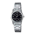 El Casio LTP-V001D-1BUDF es un reloj analógico que combina un diseño sencillo y elegante con materiales duraderos. La caja de acero inoxidable en color plateado proporciona un aspecto clásico y resistente, mientras que la correa de acero inoxidable a juego añade un toque de sofisticación. La esfera blanca del reloj está equipada con marcadores de hora en números romanos y un diseño limpio que facilita la lectura. Este reloj es ideal para el uso diario y para quienes prefieren un estilo atemporal y versátil.