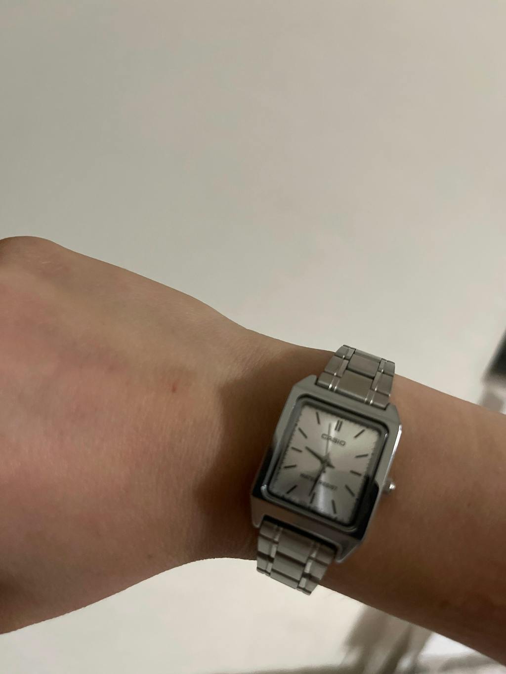 Diseño rectangular de inspiración clásica que recuerda al icónico estilo Cartier Tank, con líneas limpias y proporciones equilibradas que transmiten elegancia atemporal. Su caja y pulsera de acero inoxidable refuerzan un look sofisticado y femenino, mientras la esfera blanca con índices definidos aporta una lectura clara y refinada.