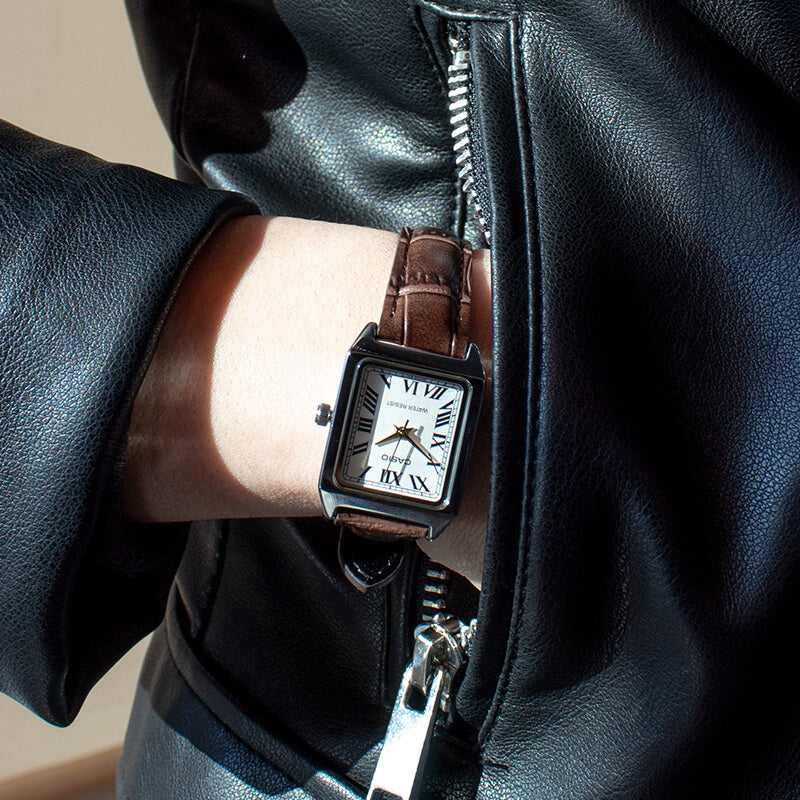 El reloj Casio LTP-V007L-7B2 es una pieza elegante que combina funcionalidad con un diseño clásico y sofisticado. Con una caja de acero inoxidable plateado y una correa de cuero genuino café, este modelo analógico presenta un dial blanco con marcadores de hora en números arábigos, lo que facilita la lectura en cualquier momento del día.
