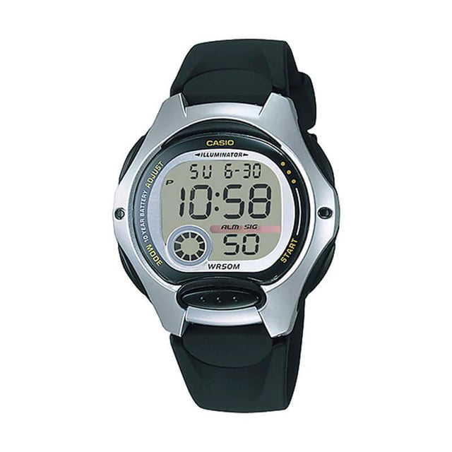 El Casio LW-200-1AV es un reloj digital compacto y confiable, ideal para el uso diario. Su caja de resina negra con detalles grises y correa flexible ofrece comodidad y resistencia. La pantalla muestra hora, día, fecha y segundos, e incluye funciones esenciales como cronómetro, alarma diaria, calendario automático y luz LED. Resistente al agua hasta 50 metros, es una opción práctica y funcional con un diseño sobrio de estilo deportivo.