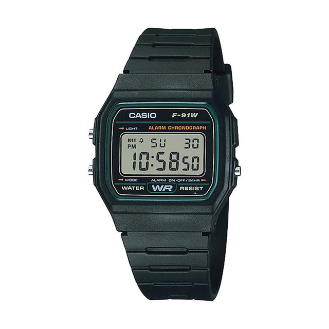 El Casio F-91W-3 es una edición con sutiles lineas verdes del reloj digital más vendido del mundo. Su diseño compacto, liviano y funcional conserva la estética retro que lo hizo famoso, ahora con un toque distintivo que realza su carácter.