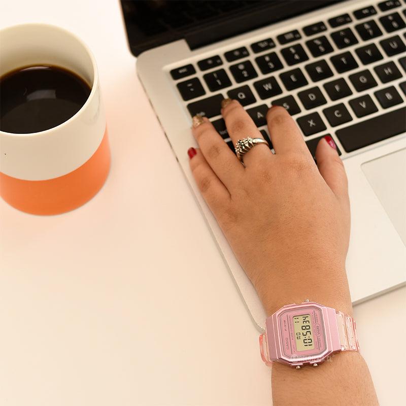El Casio F-91WS-4D presenta un diseño vibrante con una caja y correa de resina en color rosado, ofreciendo un estilo enérgico y moderno. Su pantalla LCD digital facilita la lectura de la hora, fecha y otras funciones importantes, mientras que la retroiluminación LED asegura visibilidad en condiciones de poca luz. Este reloj incluye funciones prácticas como una alarma diaria, cronómetro y calendario automático, siendo ideal para quienes buscan un reloj confiable con un toque de color y funcionalidad para el uso diario.