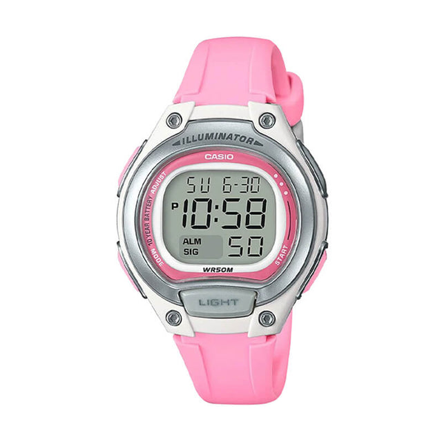 El Casio LW-203-4AVDF es un reloj digital compacto que combina un diseño atractivo con funcionalidad esencial. Este modelo destaca por su caja y correa en tonos rosados, proporcionando un aspecto llamativo y juvenil. Equipado con una pantalla digital clara, ofrece funciones básicas como alarma diaria, cronómetro y retroiluminación LED para facilitar la lectura en condiciones de poca luz. La correa de goma asegura un ajuste cómodo y flexible, adecuado para el uso diario.