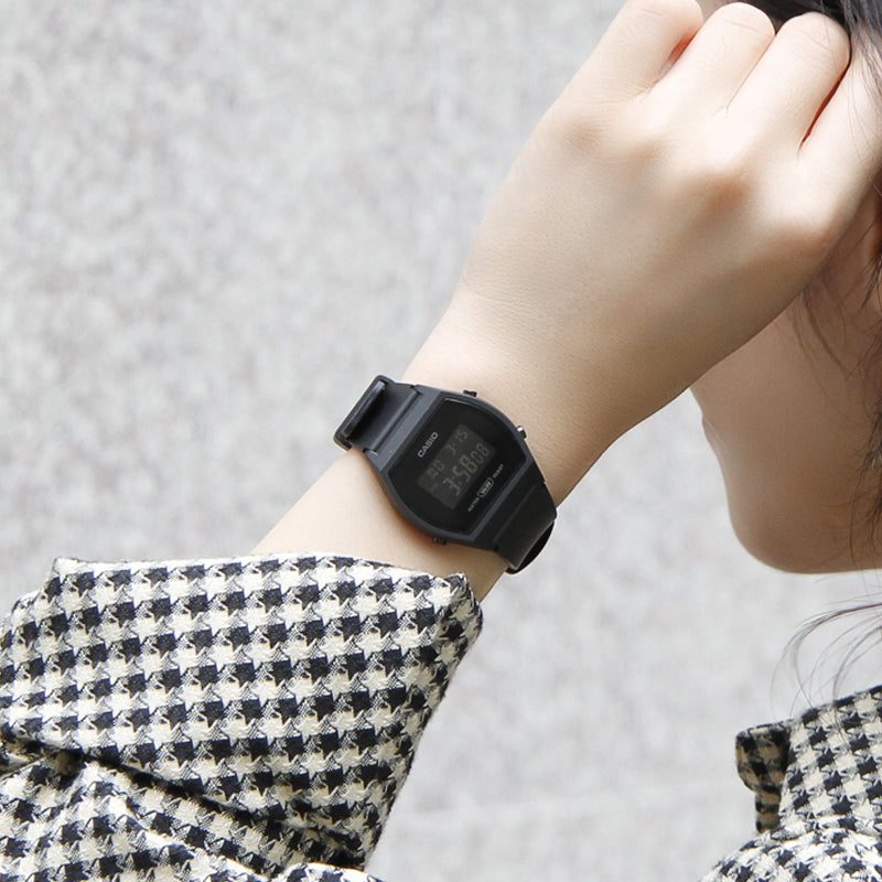 El Casio LW-204-1B ofrece un diseño digital compacto y funcional con un toque clásico. Su caja de resina negra con carátula en tono gris oscuro brinda una estética sobria y versátil.