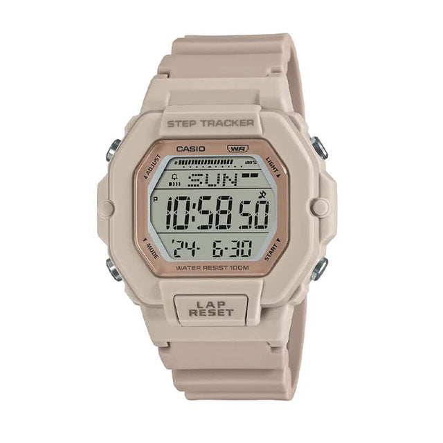 El Casio LWS-2200H-4AV es un reloj deportivo digital diseñado para un estilo de vida activo. Su caja de resina blanca con detalles rosados combina resistencia y ligereza, mientras que la correa flexible asegura comodidad durante el entrenamiento.