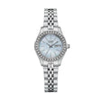 Diseño femenino y elegante con caja y pulsera de acero inoxidable que aportan un estilo limpio y sofisticado. Su esfera nácar crea un contraste moderno con los índices plateados, logrando una lectura clara y un look refinado para el uso diario. La pulsera metálica ofrece comodidad y un ajuste equilibrado en la muñeca.
