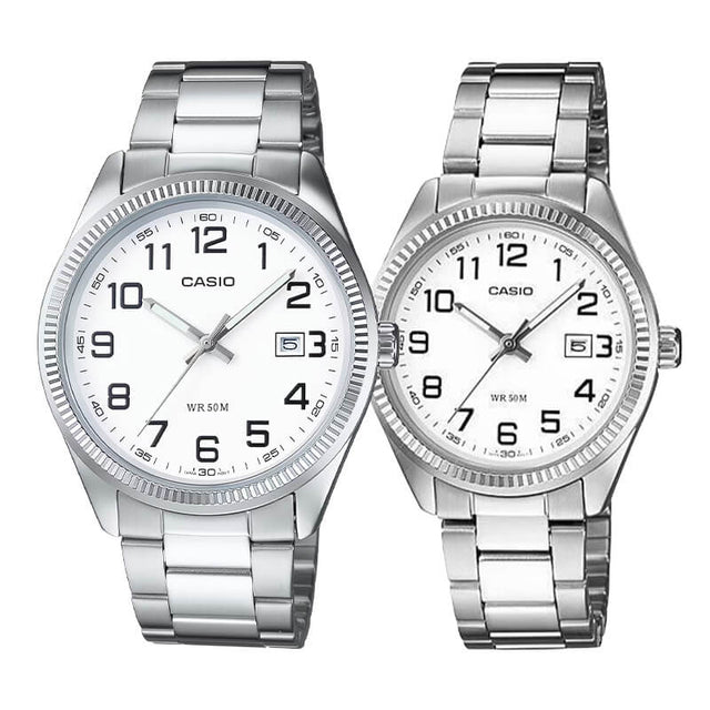 Pack Relojes Casio Clásicos en Acero con Esfera Blanca – Para Él y Ella