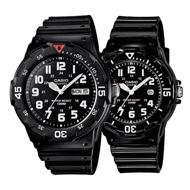 Pack Relojes Casio MRW y LRW – Estilo Deportivo en Negro para Él y Ella