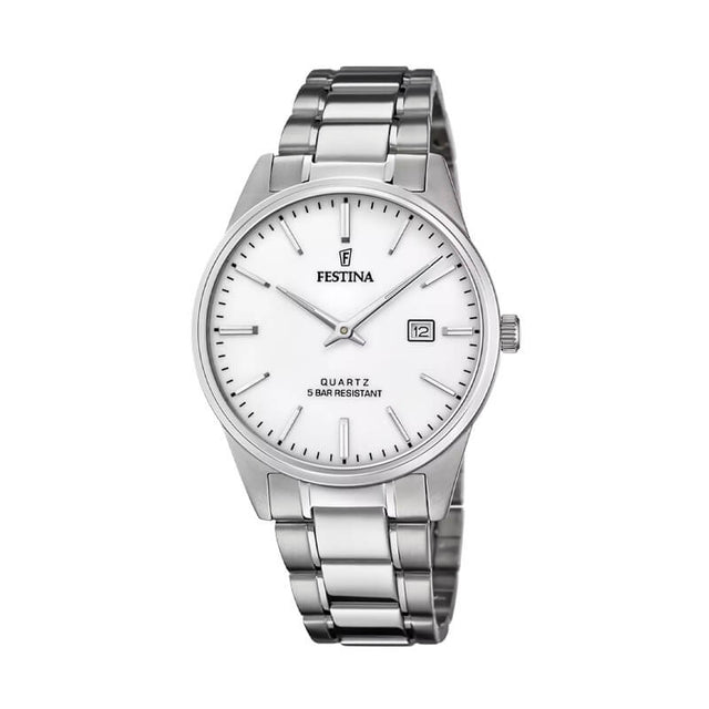 El Festina F20511/2 es un reloj análogo para hombre que refleja elegancia clásica con un diseño sobrio y versátil. Su esfera blanca con marcadores metálicos y agujas visibles ofrece una lectura limpia y refinada, perfecta para quienes prefieren un estilo discreto pero distinguido.