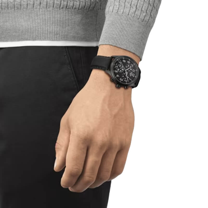 El Tissot Chrono XL impone con su estética audaz y versátil. Su amplia esfera negra mate con función de cronógrafo y números sobredimensionados ofrece una lectura rápida y un look moderno, ideal para el día a día o para un estilo urbano sofisticado.