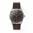 Su esfera gris antracita con textura tipo graneado presenta índices aplicados y un diseño limpio y equilibrado, inspirado en los relojes de los años 30. La caja de acero inoxidable y la correa de cuero marrón con costuras visibles aportan un toque cálido y vintage. El cristal de zafiro curvo refuerza su estilo retro, mientras que la resistencia al agua hasta 50 metros lo hace funcional para el día a día.