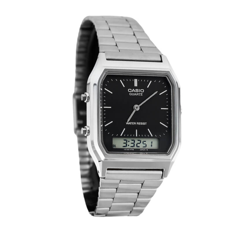 El Casio AQ-230A-1D ha vuelto con fuerza y se ha convertido en uno de los relojes más buscados del último año, gracias a su estética vintage y su mezcla única de estilo análogo y digital. Este modelo unisex captura la esencia retro de los años 80 con un diseño compacto y elegante que se adapta a cualquier look.