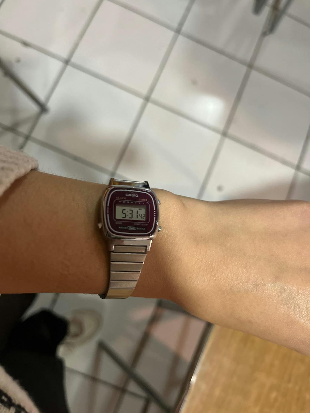 El Casio LA-670WA-4 es un reloj digital femenino de diseño vintage, con caja rectangular cromada y carátula en un delicado tono burdeo que aporta un estilo femenino y nostálgico. Su correa de acero inoxidable ajustable lo hace cómodo y liviano para el uso diario. Incluye cronómetro, alarma, calendario automático y temporizador. Ideal para looks casuales o quienes buscan un accesorio retro con personalidad suave.