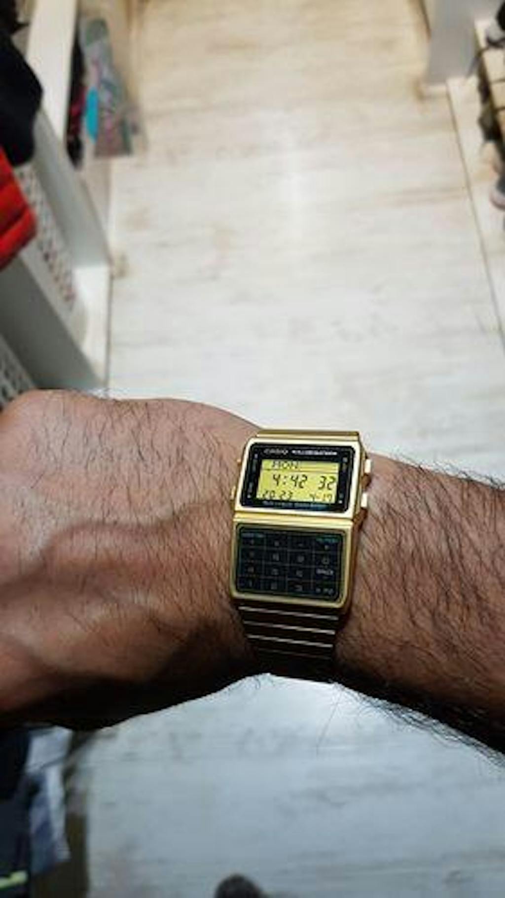 Diseño icónico de estética retro con caja y brazalete dorados de acero inoxidable que destacan por su carácter tecnológico y reconocible. Su pantalla digital incorpora teclado frontal y una disposición clara de información, logrando una presencia única que mezcla funcionalidad clásica con un estilo vintage muy valorado hoy.