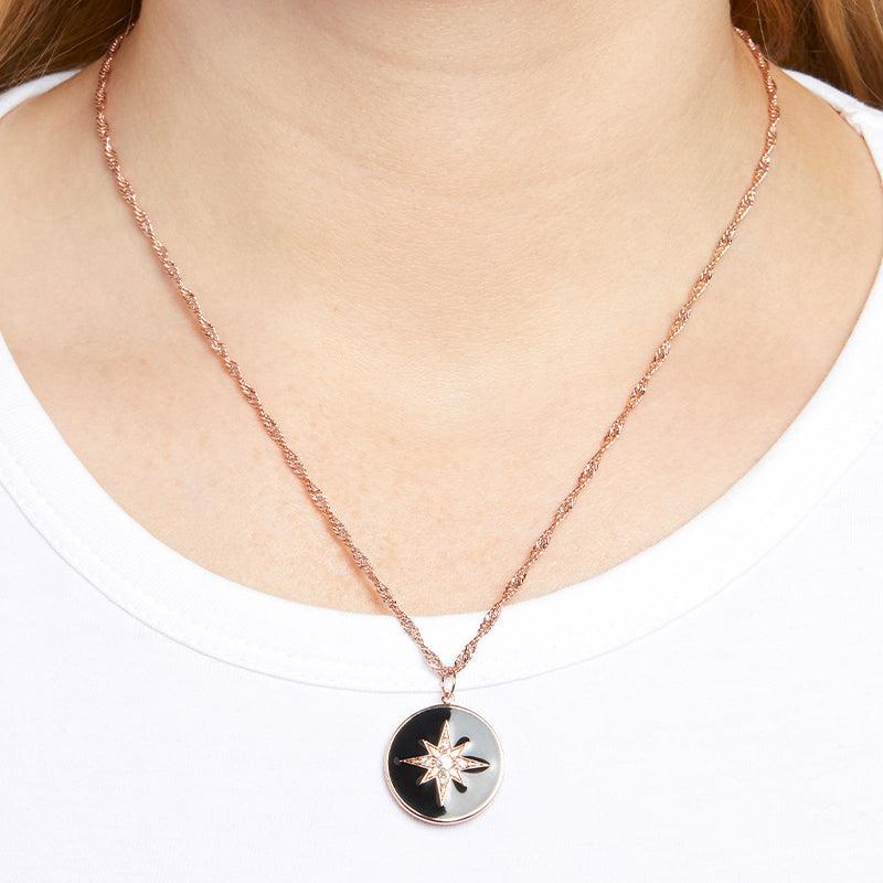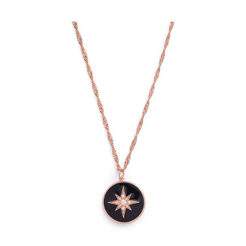 Inspirándonos en todo lo que brilla en el cielo nocturno, le damos la bienvenida a la Estrella Polar a nuestra querida colección Celestial. Conocido como la estrella más brillante y una luz que guía a los viajeros a casa, nuestro colgante North Star está incrustado con cristales y esmalte negro brillante para un impacto adicional.