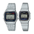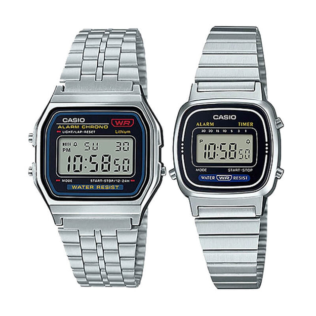 La nostalgia nunca se vio tan bien. Este pack de relojes Casio plateados reúne dos modelos legendarios del estilo digital vintage: el Casio LA‑670WA‑1, con su diseño pequeño y elegante ideal para muñecas femeninas, y el Casio A‑159WA‑1, un clásico unisex con estética retro y carácter atemporal.