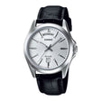 Reloj Casio De Acero Inoxidable Con Esfera Plateada Y Correa De Cuero Para Hombre.