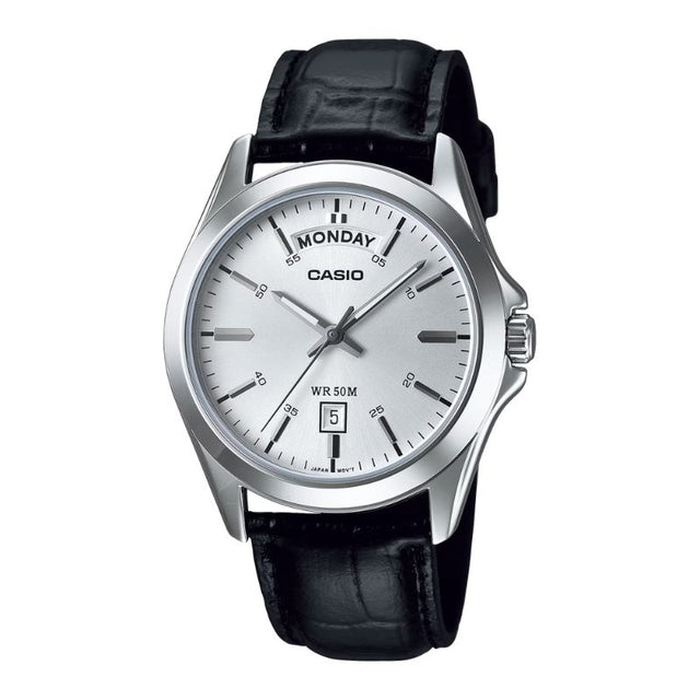 Este reloj Casio destaca por su diseño clásico y elegante. La esfera plateada, combinada con los marcadores de hora en plata y negro, otorgan un estilo atemporal que se adapta a cualquier ocasión.