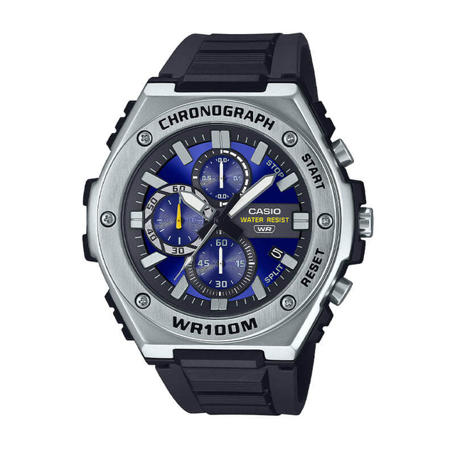 Destaca por su estilo deportivo con una estética moderna y resistente. Su caja de resina azul con bisel metálico y correa del mismo tono aporta frescura y personalidad, ideal para quienes buscan un look activo y casual.