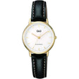 Reloj Q&Q Con Caja Dorada Y Esfera Blanca Minimalista Con Correa Negra Para Mujer.