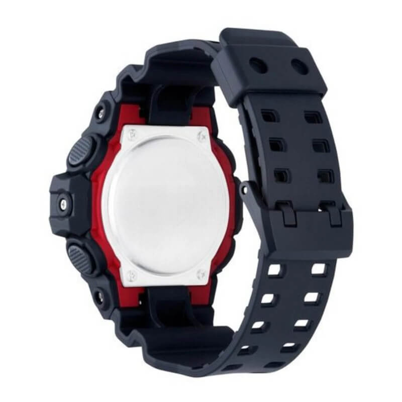 El G-SHOCK GA-700-1ADR es un reloj análogo-digital masculino de estilo robusto y deportivo. Su caja sobredimensionada en resina negra y botones frontales brindan un diseño imponente y de alta resistencia. Incluye cronómetro, temporizador, 5 alarmas, hora mundial, luz LED súper iluminadora y resistencia al agua de 200 metros. Ideal para entrenamiento intenso, aventuras outdoor o quienes buscan un look audaz y funcional.