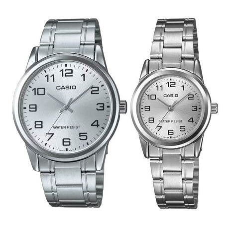 Pack Relojes Casio Clásicos – Esfera Plateada para Él y Para Ella
