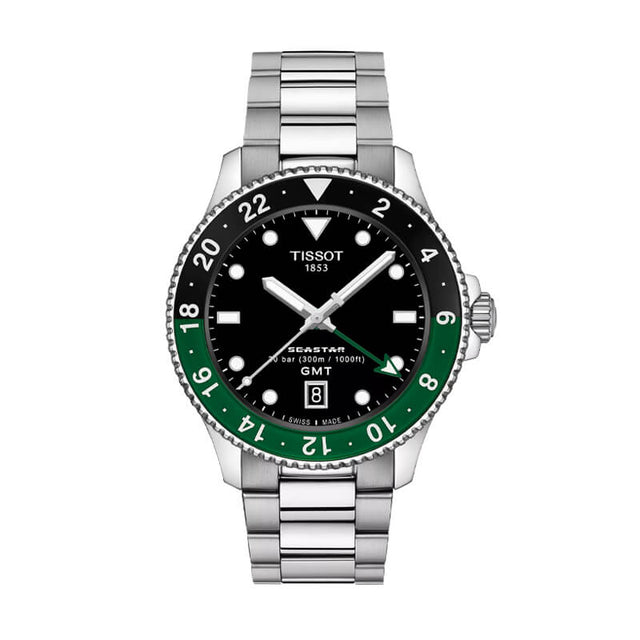 El Tissot Seastar 2000 Professional GMT es el reloj ideal para quienes exploran sin fronteras. Con resistencia al agua de hasta 300 metros y certificación ISO 6425 para buceo, combina la precisión suiza con una funcionalidad pensada para viajes y profundidad.