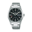 Caja de acero inoxidable y esfera negra con acabado cepillado que reflejan el estilo clásico y robusto de Seiko 5. Los marcadores y agujas luminosas aportan excelente legibilidad, mientras su ventana de día y fecha equilibra diseño y funcionalidad.